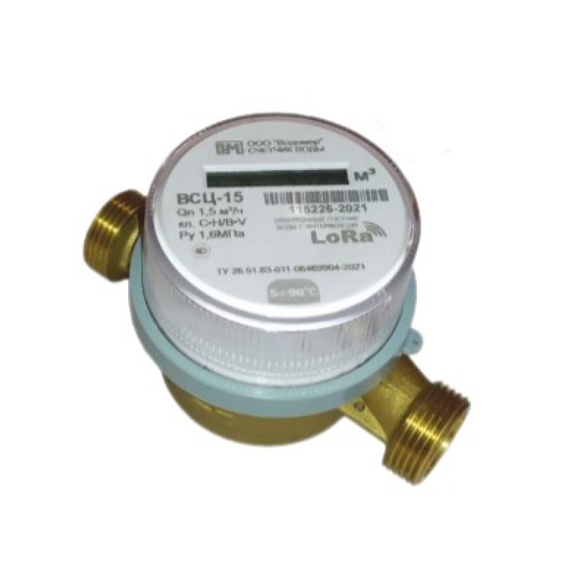 Счетчик универсальный Водомер ВСЦ 15 LoRaWAN, одноструйный, крыльчатый, Ду15 мм, резьба, материал корпуса-латунь, IP54,