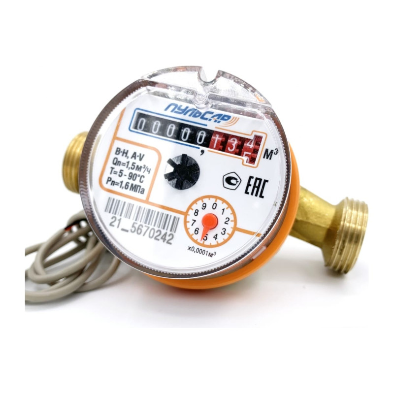 Счетчик воды Пульсар Ду15 импульсный выход, Qn=1,5 м3/ч, L=110мм, (присоединители с обратным клапаном в комплекте)