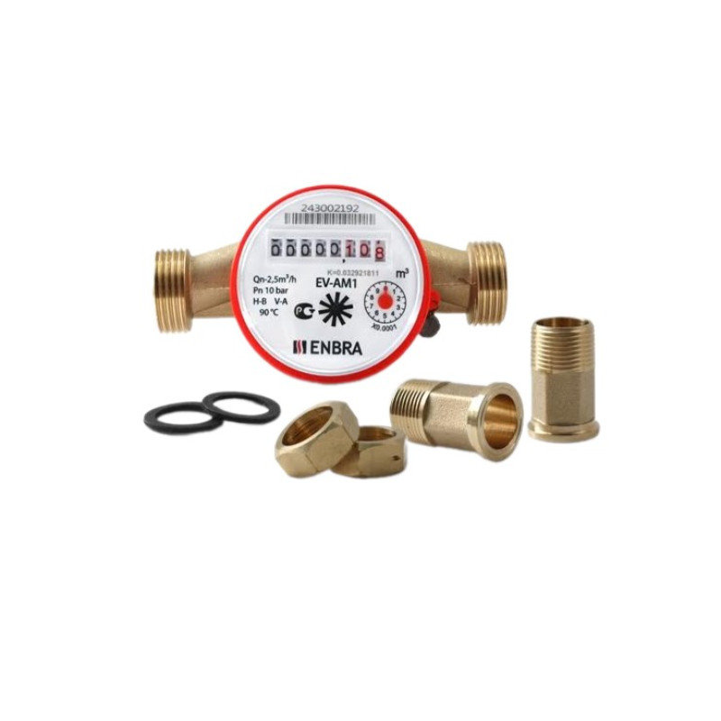 Счётчик учёта горячей воды ENBRA EV-AM1 L80 D15 B, со сгонами