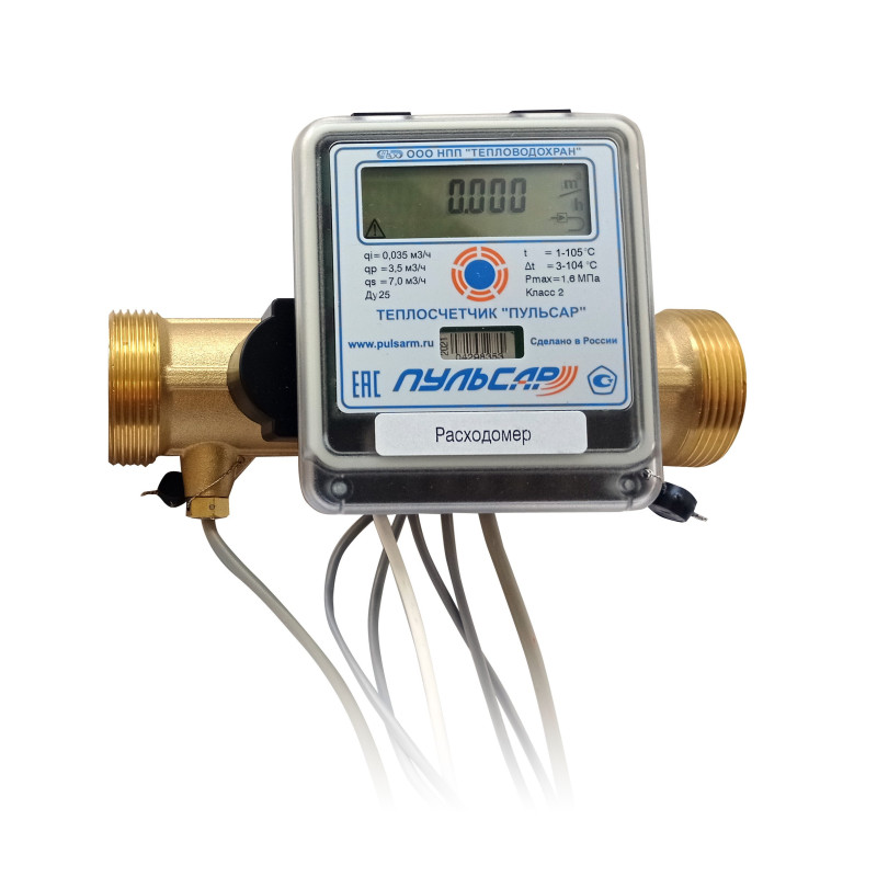Общедомовый теплосчетчик Пульсар Ду25 RS-485 + 2 имп. входа, qp=3,5 м3/ч, 2 датчика давления, 105°C
