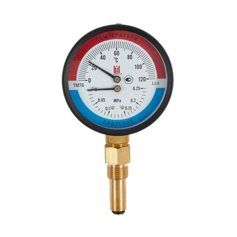 Термоманометр тип ТМТБ комбинированный прибор, для измерения давления и температуры сред, агрессивных по отношению к медным сплавам и не агрессивных по отношению к нержавеющей стали.