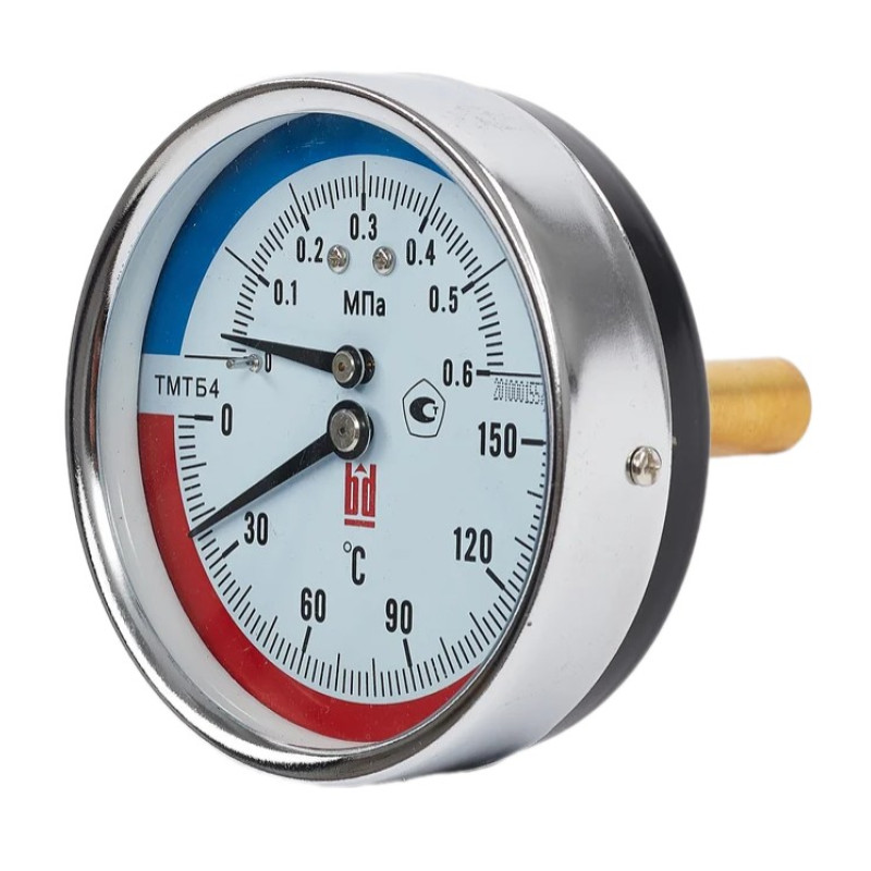 Термоманометр тип ТМТБ комбинированный прибор, для измерения давления и температуры сред, агрессивных по отношению к медным сплавам и не агрессивных по отношению к нержавеющей стали.