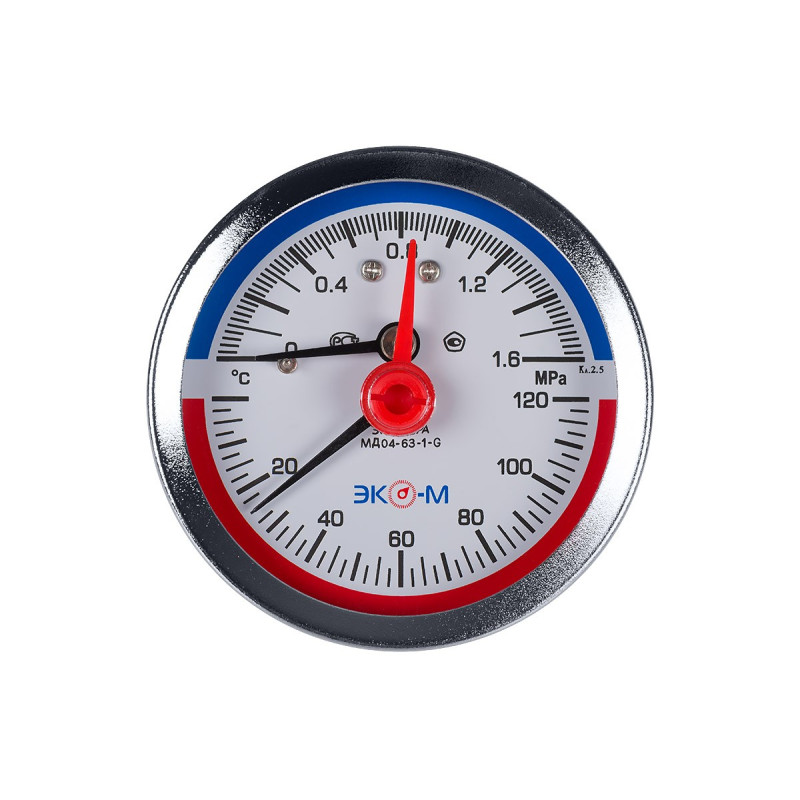 Термоманометр Экомера МД04-63мм 0..1,6МПа 0..120С G1\4 с переходником на G1\2 Осевой