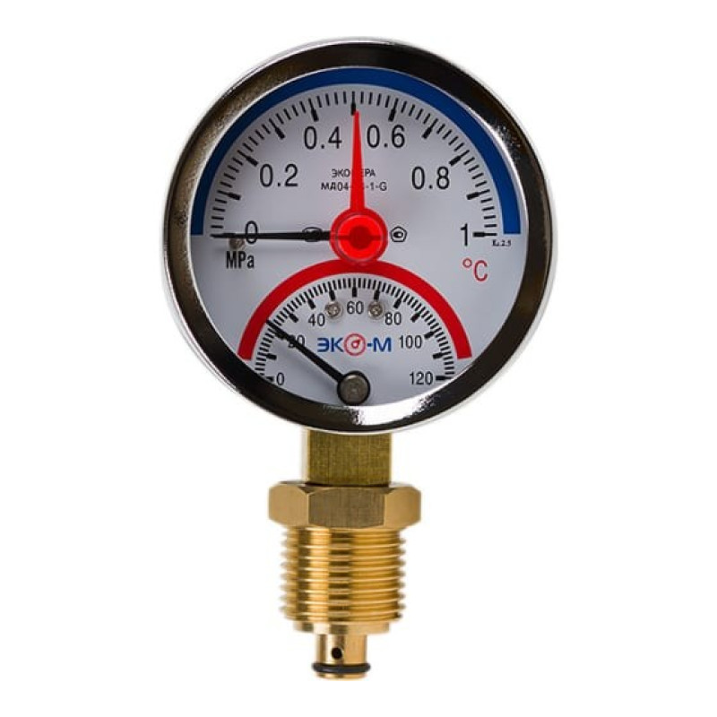 Термоманометр Экомера МД04-63мм 0..1МПа 0..120С G1\4 с переходником на G1\2