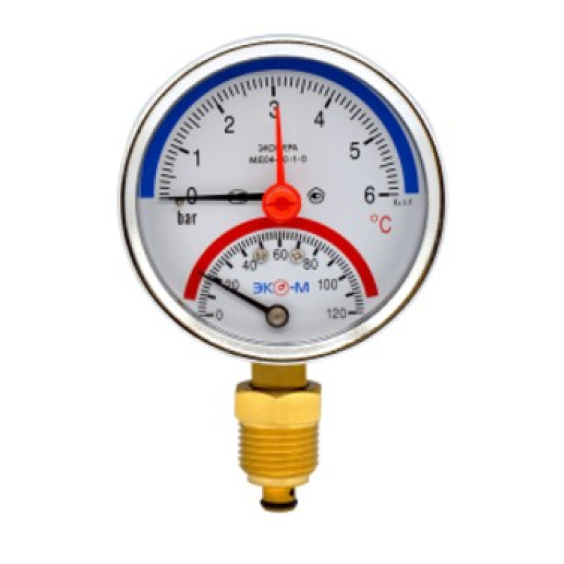 Термоманометр Экомера МД04-80мм 0..6бар 0..120С G1\4 с переходником на G1\2