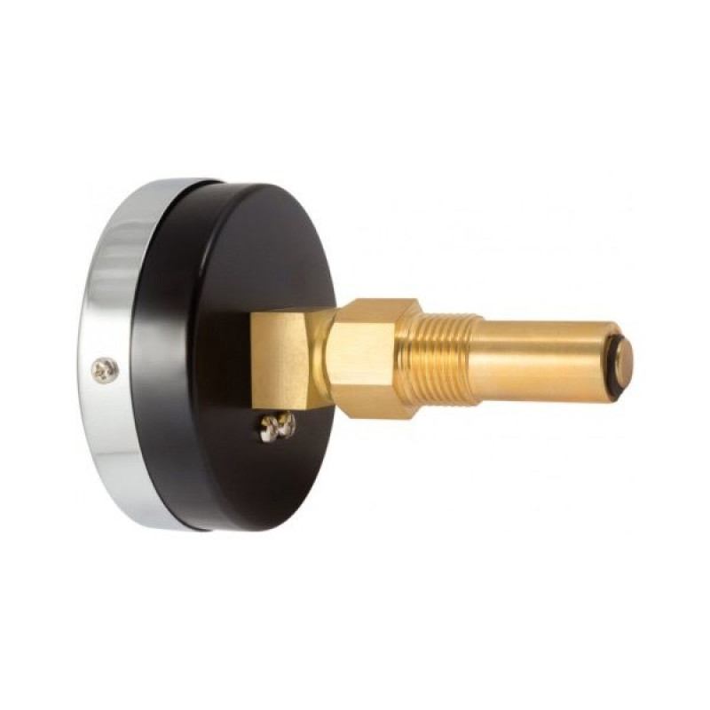 Термоманометр аксиальный — комбинированный прибор, предназначенный для измерения температуры и избыточного давления неагрессивных к медным сплавам сред в системах теплоснабжения и водоснабжения. Термоманометр осевой объединяет в одном корпусе манометр и термометр, имеет циферблат с двумя шкалами и две указательных стрелки. Одна шкала служит для отсчета давления, другая — температуры. Прибор комплектуется клапаном, который служит для удобства подключения прибора, а также позволяет демонтировать термоманометр без разгерметизации (слива) системы и остановки технологического процесса. Область применения аксиальных термоманометров: системы отопления, водоснабжения, бойлеры, паровые котлы.