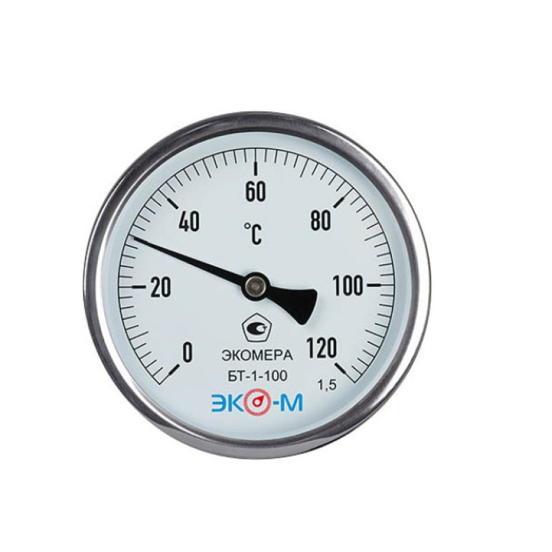 Термометр биметаллический БТ-1-100 120С Дк100 L=40 осевой Экомера