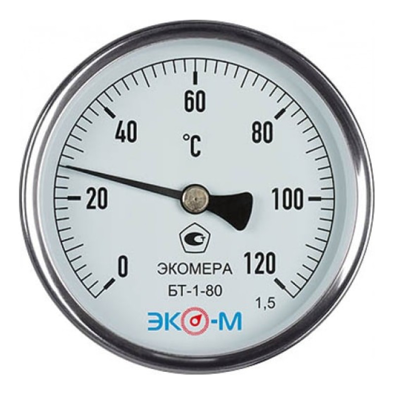 Термометр ЭКОМЕРА биметалл БТ-1-80 120С Дк80 L=40 осевой БТ-1-80-120С-L40