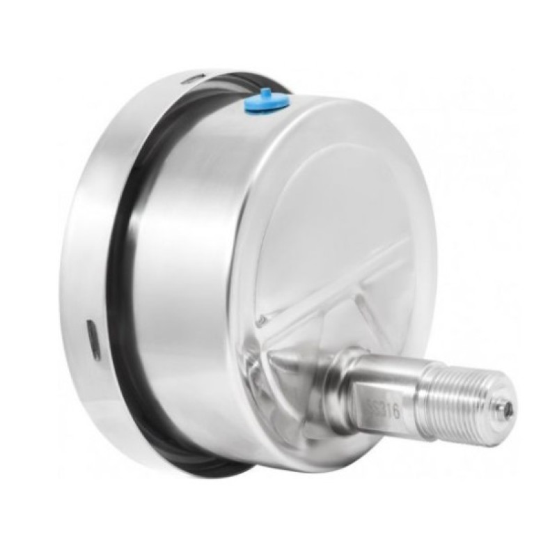Вакуумметр коррозионностойкий осевой с эксцентричным подключением (подключение сзади со смещением) ТВ-521ТЭ отлично подойдет для измерения вакуумметрического давления агрессивных жидких и газообразных, не вязких и не кристаллизующихся измеряемых сред с температурой до 200 °C. Данный тип вакуумметров может использоваться в условиях агрессивной окружающей среды, повышенной вибрации и при измерении переменного давления. Повышенная устойчивость к воздействию окружающей среды, достигается за счет степени защиты приборов IP65. Корпус прибора изготовлен из нержавеющей стали 08Х17Н13М2. При измерении давления с высокими динамическими нагрузками, прибор необходимо заполнить глицерином или силиконом.