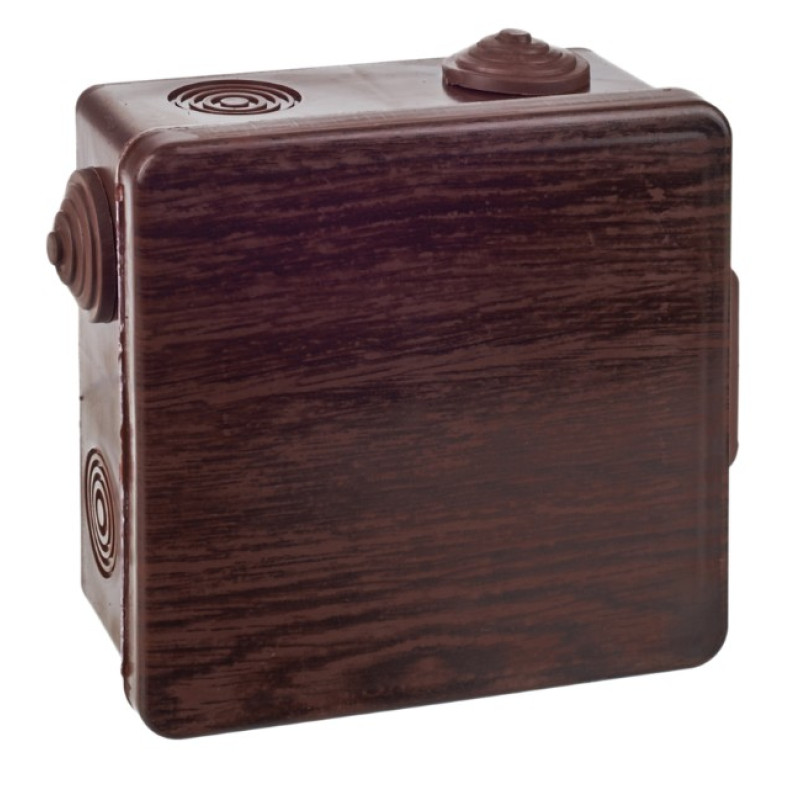 Коробка распаячная КМ для открытой проводки с откидной крышкой 100х100х50мм IP54 8 гермовводов дуб IEK