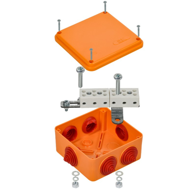 Коробка распаячная огнестойкая ПС 100х100х50мм 6P 4мм2 IP55 6 вводов IEK UKF30-100-100-050-6-4-09