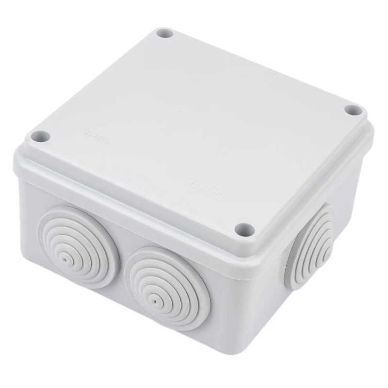 Коробка распаячная 100х100х50, 6 вводов, для открытой проводки, серый. Применяются для разветвления проводов при монтаже открытой проводки. Ударопрочный полистирол, полипропилен.