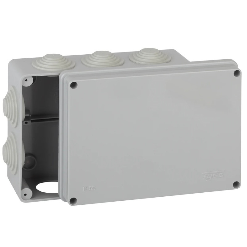 Коробка распаячная 200х140х75, 10 вводов, для открытой проводки, серый. Применяются для разветвления проводов при монтаже открытой проводки. Ударопрочный полистирол, полипропилен
