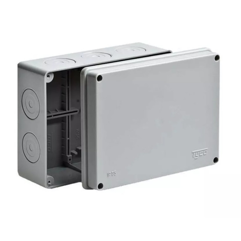 Коробка распаячная 200х140х75, для открытой проводки, серый. Применяются для разветвления проводов при монтаже открытой проводки.