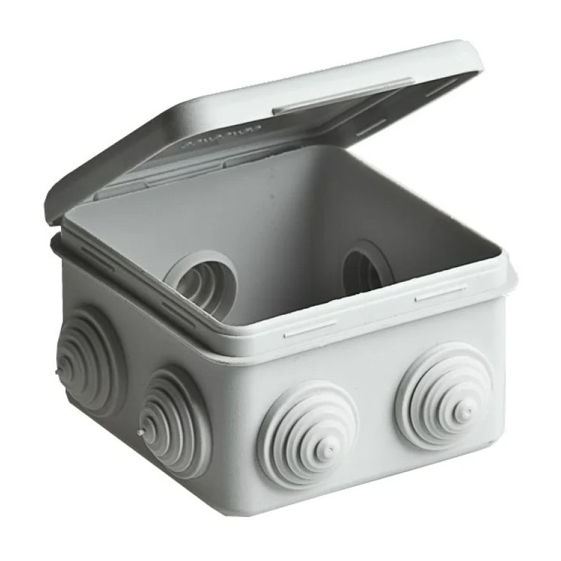Коробка распаячная 80х80х50, 7 вводов, для открытой проводки, откидная крышка, серый. Применяются для разветвления проводов при монтаже открытой проводки. Ударопрочный полистирол, полипропилен.