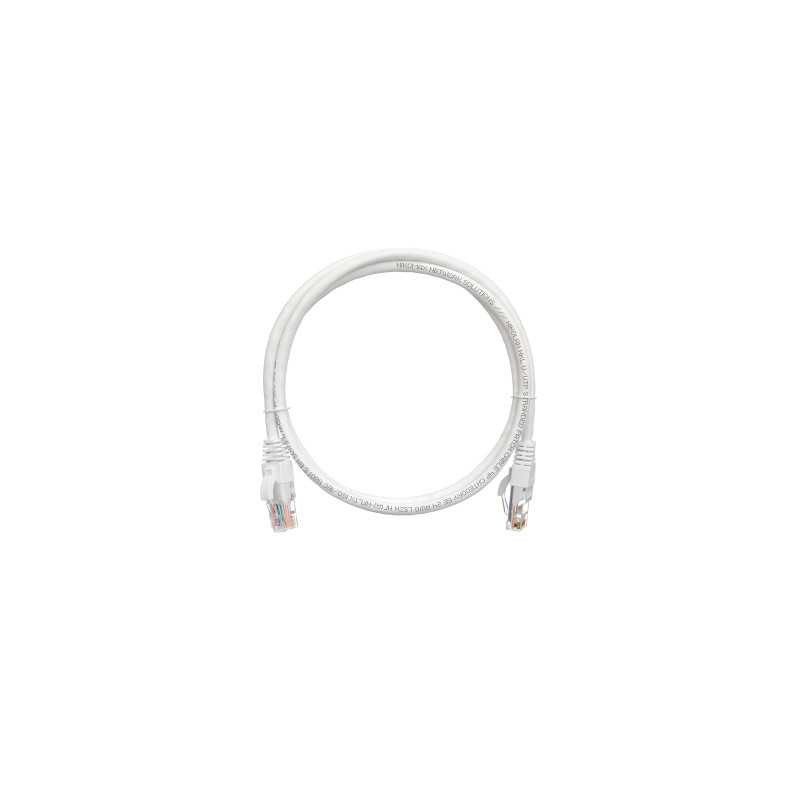 Коммутационный шнур NIKOMAX U/UTP 4 пары, Кат.5е (Класс D), 100МГц, 2хRJ45/8P8C, T568B, заливной, с защитой защелки, многожильный, BC (чистая медь), 24AWG (7х0,205мм), LSZH нг(А)-HFLTx, белый, 2м