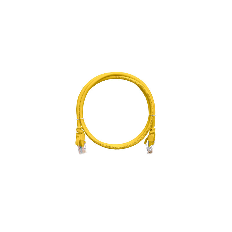 Коммутационный шнур NIKOMAX U/UTP 4 пары, Кат.5е (Класс D), 100МГц, 2хRJ45/8P8C, T568B, заливной, с защитой защелки, многожильный, BC (чистая медь), 24AWG (7х0,205мм), LSZH нг(А)-HFLTx, желтый, 3м