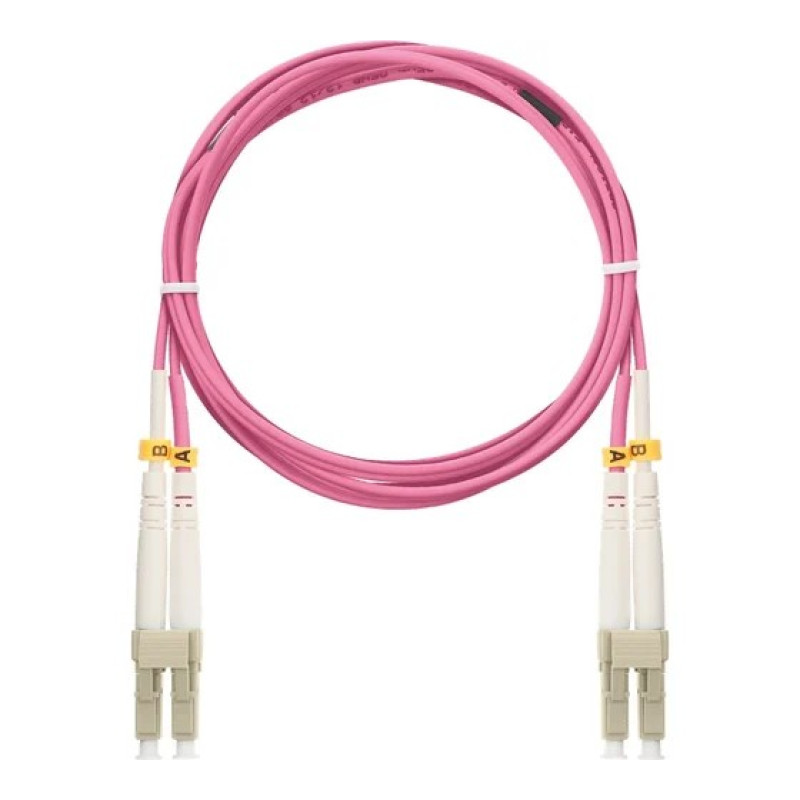 Шнур NIKOMAX волоконно-оптический, соединительный, многомодовый 50/125мкм, стандарта OM4, LC/UPC-LC/UPC, двойной, полимерный материал нг(A)-HF, 2мм, маджента, 2м