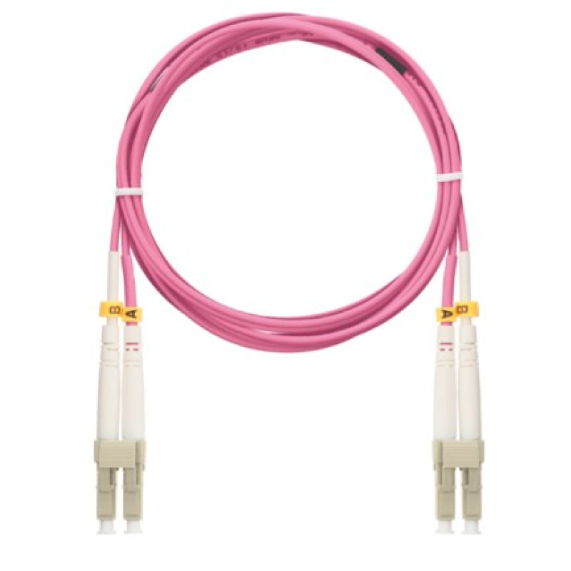 Шнур NIKOMAX волоконно-оптический, соединительный, многомодовый 50/125мкм, стандарта ОM4, LC/UPC-LC/UPC, двойной, полимерный материал нг(A)-LSLTx, 2мм, маджента, 5м