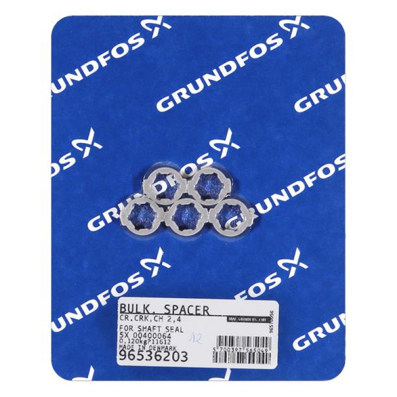 Grundfos BULK - Spacer for shaft seal (5 pcs), номер продукта 96536203 – оригинальные компоненты для обслуживания насосного оборудования. Подходят для планового ремонта и замены изношенных деталей, обеспечивая долговечность и стабильную работу системы. Изготовлены из качественных материалов, полностью соответствует стандартам производителя и совместимы с соответствующими моделями насосов.