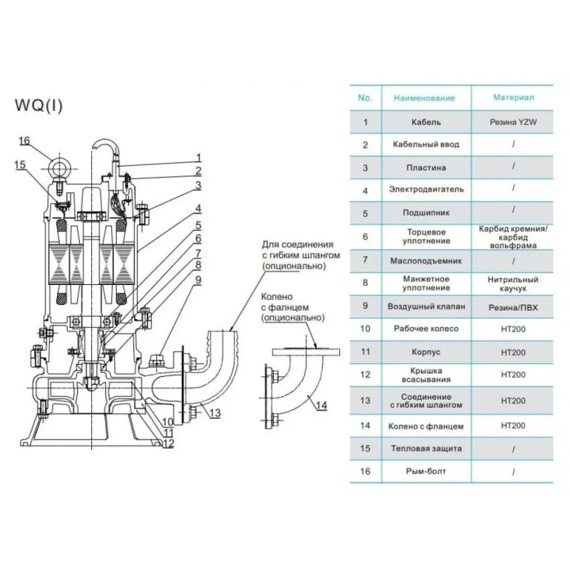 - Рабочее колесо: чугун HT200.