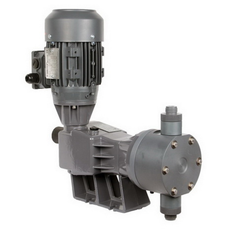 Серия D – мембранные дозировочные насосы. Корпус изготовлен излитого алюминия, защищенного эпоксидной, антикислотной краской.Производительность насосов регулируется при помощимикрометрической ручки, которая управляет длиной хода пистона.Регулировка производительности может осуществляться во время работынасоса. Насос приводится в действие вертикально расположеннымдвигателем. Коробка передач работает по принципу холостого хода(возврат пистона происходит при помощи пружины возврата).