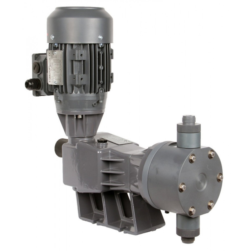 Серия P – серия плунжерных дозировочных насосов. Корпус насоса изготовлен из литого алюминия, защищенного эпоксидной, антикислотной краской. Производительность насосов регулируется при помощи микрометрической ручки, которая управляет длиной хода плунжера. Регулировка производительности может осуществляться во время работы насоса. Насос приводится в действие вертикально расположенным двигателем. Коробка передач работает по принципу холостого хода (возврат пистона происходит при помощи пружины возврата).