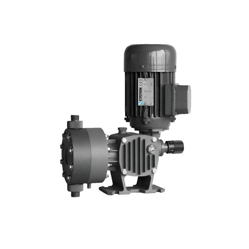 ST-P – мини серия плунжерных дозировочных насосов. Корпус насосаизготовлен из литого алюминия, защищенного эпоксидной,антикислотной краской. Производительность насосов регулируется припомощи микрометрической ручки, которая управляет длиной ходаплунжера. Регулировка производительности может осуществляться вовремя работы насоса. Насос приводится в действие вертикальнорасположенным двигателем. Коробка передач работает по принципухолостого хода (возврат пистона происходит при помощи пружинывозврата).
