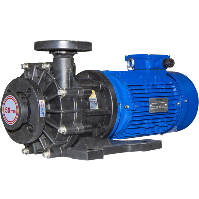 Центробежные герметичные химические насосы с магнитной муфтой серии ХМ предназначены для перекачивания химически активных жидкостей с плотностью до 1700 кг/м3 (зависит от мощности э/д), вязкостью до 50 сСт и концентрацией взвешенных частиц не более 1,25 мг/куб.см, с удельным объемным электрическим сопротивлением менее 105 Ом×м, не оказывающих разрушающего воздействия на материалы проточной части насоса.