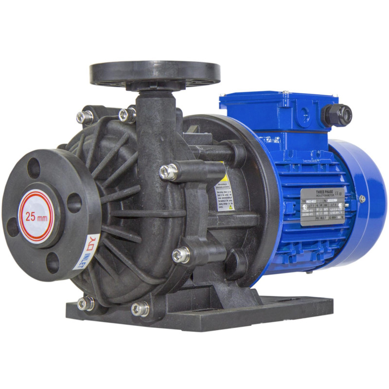 Центробежные герметичные химические насосы с магнитной муфтой серии ХМ предназначены для перекачивания химически активных жидкостей с плотностью до 1700 кг/м3 (зависит от мощности э/д), вязкостью до 50 сСт и концентрацией взвешенных частиц не более 1,25 мг/куб.см, с удельным объемным электрическим сопротивлением менее 105 Ом×м, не оказывающих разрушающего воздействия на материалы проточной части насоса.