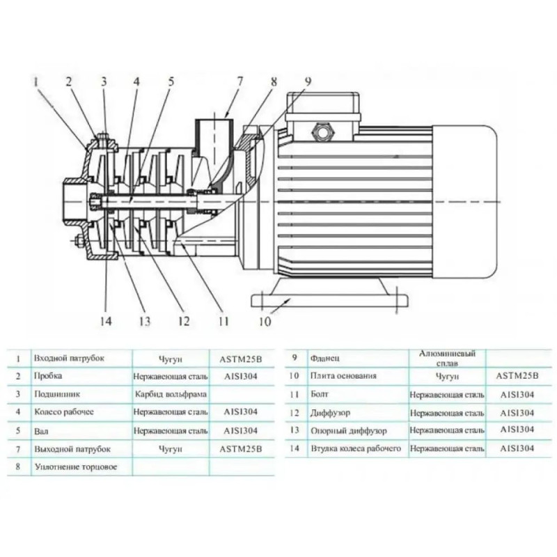 - Рабочие колеса и диффузоры: нержавеющая сталь AISI 304