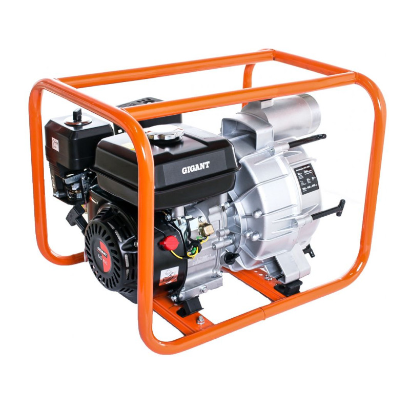 Мотопомпа Gigant предназначена для перекачивания чистой и загрязненной воды. Основание на ножках и наличие дополнительных ребер жесткости и демпферов обеспечивает хорошую устойчивость аппарата на поверхности.