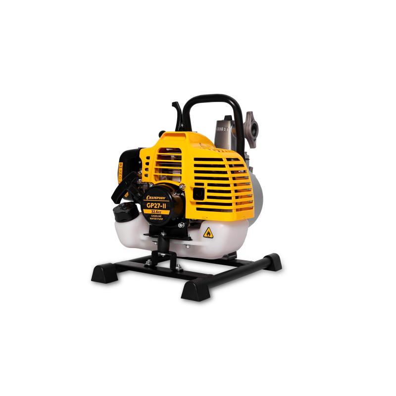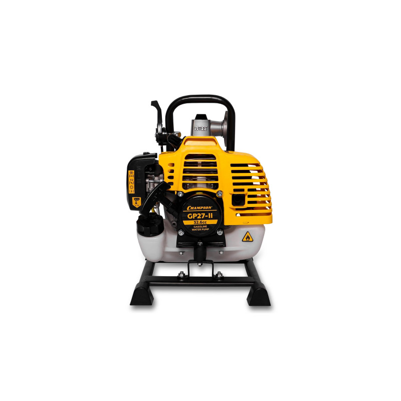 Мотопомпа Champion GP27-II предназначена для перекачки чистых жидкостей. Оснащена патрубками диаметром 25 мм. Отличается пропускной способностью 130 л/мин. Двигатель работает на топливной смеси: бензин АИ-92 + моторное масло (50:1). Праймер обеспечивает легкий и быстрый запуск двигателя. В конструкции имеется рама с ножками для устойчивости мотопомпы на любой поверхности.