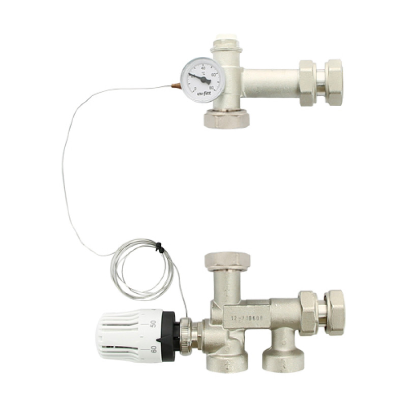 Предназначены для создания низкотемпературных систем отопления (типа «теплый пол»). Монтируется непосредственно на коллекторной группе низкотемпературного контура и подключается к высокотемпературному контуру системы отопления.