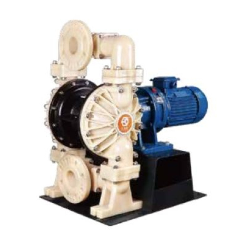 Мембранные насосы с электроприводом предназначены для перекачивания различных химических веществ, с которыми материалы насоса не вступают в химическую реакцию. Пневматические насосы проще по конструкции и дешевле, но требуют подвода сжатого воздуха для своей работы (что оправдано, в случае наличия пневмосети на предприятии). Электропривод позволяет использовать мембранные насосы в условиях отсутствия пневмосети. По конструкции электрические мембранные насосы идентичны пневматическим, отличие только в центральном блоке. Главный распределительный пневмоклапан в них заменён на эксцентриковый механизм, превращающий вращение вала электродвигателя в продольной плоскости в поперечное перемещение мембран проточной части.