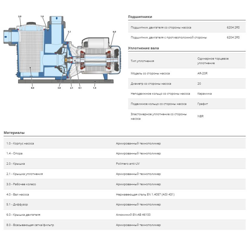 Самовсасывающие центробежные насосы с предварительным фильтром подходят для циркуляции и фильтрации воды в бассейнах, особенно для тех, где требуется большой расход (перелив). Они рекомендуются для рециркуляции воды в малых и средних бассейнах объемом до 180 м3. Воды для использования в плавательных бассейнах (рН 6,5 - 8,4). Установка должна производиться в проветриваемых помещениях, защищенных от непогоды, с достаточным пространством для технического обслуживания.