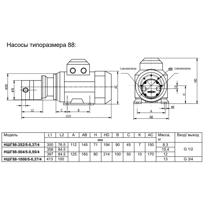 Шестеренный насос Ампика НШГ88-1008/5-0,75/4