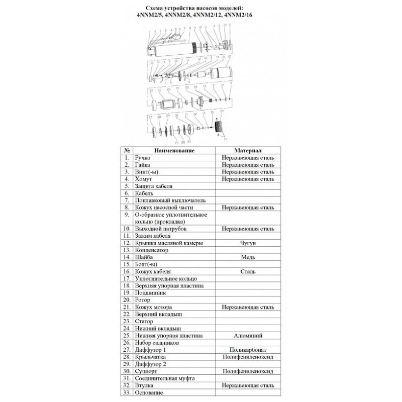 | Тип насоса | Погружной |