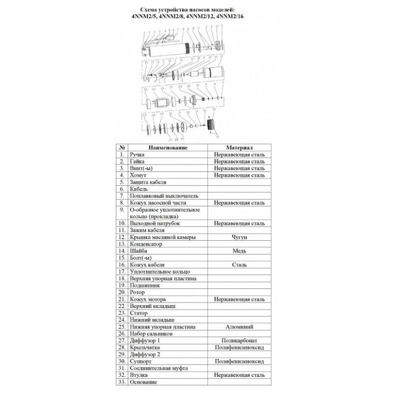 | Тип насоса | Погружной |