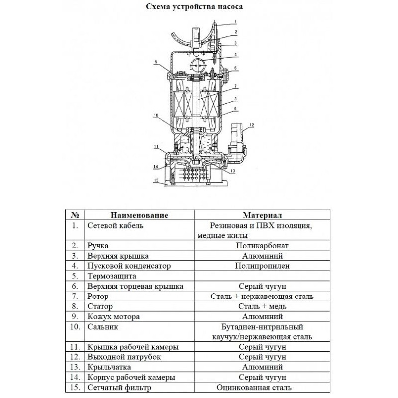 | Тип насоса | Погружной |