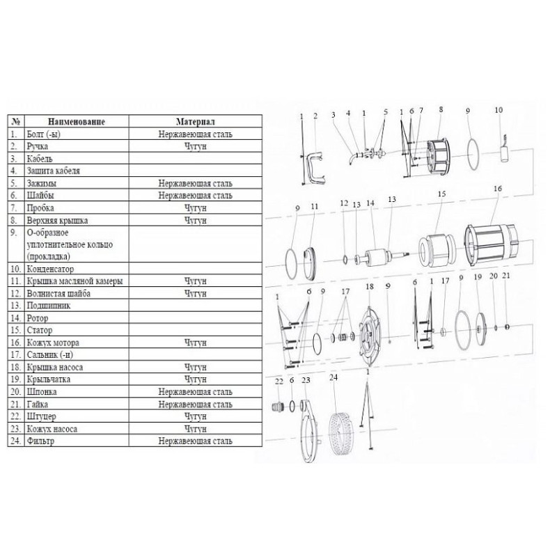| Наличие поплавкового выключателя | Нет |