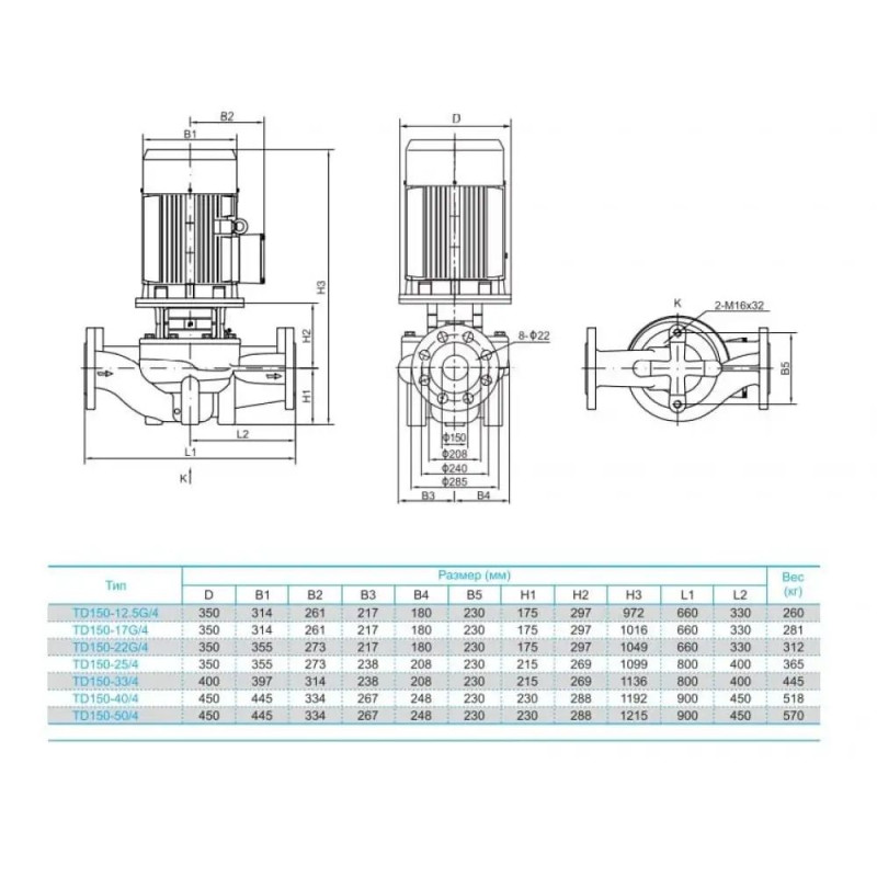 - Соединение вала двигателя и проточной части может быть реализовано несколькими способами, в зависимости от типоразмера: TD32-TD150: удлиненная конструкция вала проточной части; TD200-300: соединение с помощью муфты.