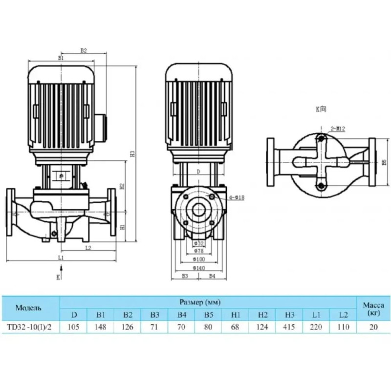 CNP TD 32-10(I)/2 SWSCJ - одноступенчатый рядный циркуляционный центробежный вертикальный насос одностороннего всасывания с соосным размещением патрубков «in-line».