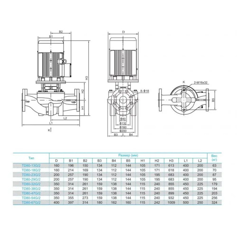 - Соединение вала двигателя и проточной части может быть реализовано несколькими способами, в зависимости от типоразмера: TD32-TD150: удлиненная конструкция вала проточной части; TD200-300: соединение с помощью муфты.