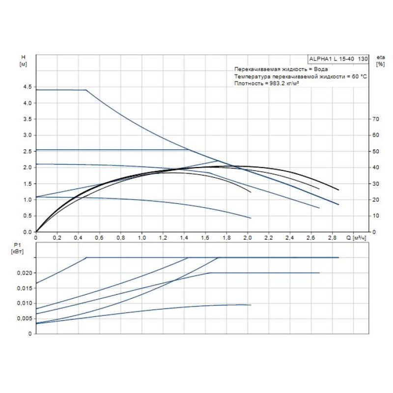 Grundfos ALPHA1 L 15-40 130 представляет собой высокоэффективный циркуляционный насос, оснащенный электродвигателем на постоянных магнитах (технология ECM).