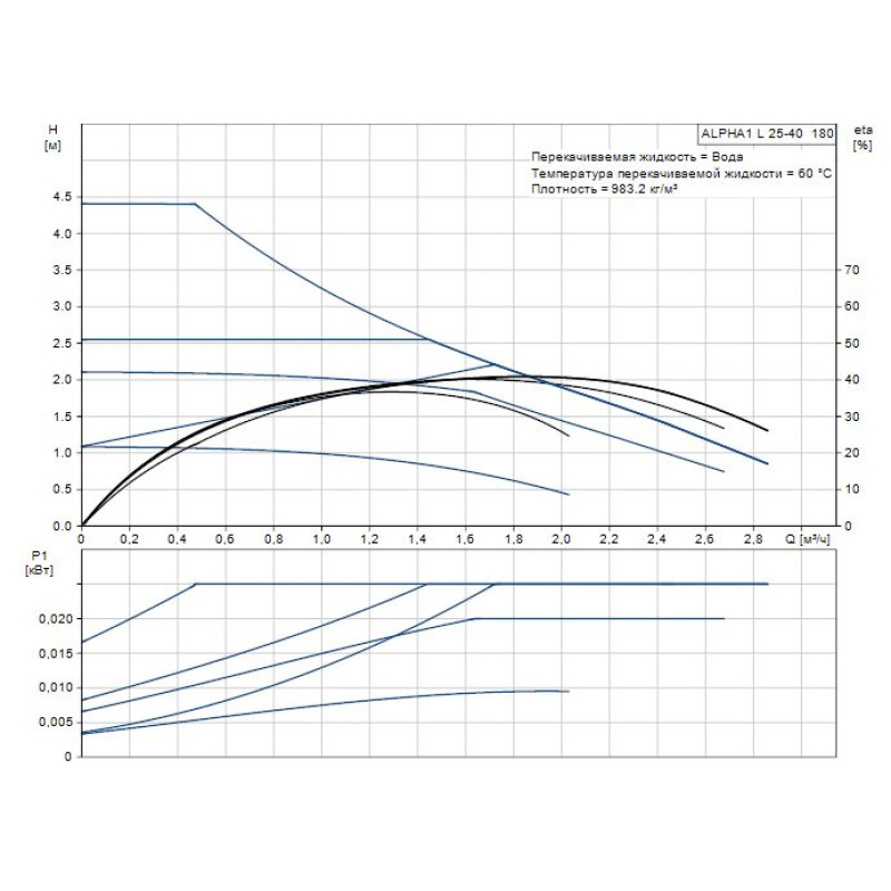 Grundfos ALPHA1 L 25-40 180 представляет собой высокоэффективный циркуляционный насос, оснащенный электродвигателем на постоянных магнитах (технология ECM).