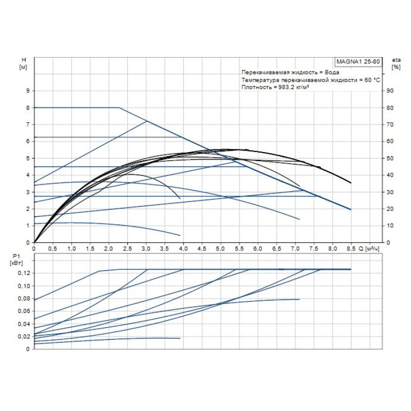 Насосы MAGNA1 представляют собой комплексный ряд циркуляционных насосов со встроенной системой регулирования, обеспечивающей согласование производительности насоса с фактическими требованиями системы. Во многих системах это приводит к значительной экономии энергии, снижению шумов от терморегулирующих клапанов и другой подобной арматуры, а также к улучшению управляемости системы. Все насосы серии MAGNA1 соответствуют требованиям EuP 2013 и 2015. Нужный напор можно настроить с помощью кнопок на панели управления. Благодаря герметично изолированному ротору, техническое обслуживание для данных насосов не требуется. Встроенный релейный выход для передачи сигнала аварии позволяет контролировать состояние насоса, а встроенный цифровой вход служит для внешнего запуска/останова насоса. Беспроводное подключение к приложению Grundfos Go Remote.