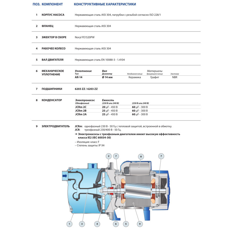 Рекомендуются для перекачивания чистой воды и жидкостей, химически неагрессивных по отношению к конструкционным материалам насоса. Самовсасывающие электронасосы JCR спроектированы для перекачки воды даже при содержании в ней повышенного количества воздуха. Благодаря своей надежности и простоте эксплуатации, эти электронасосы рекомендуются к применению в бытовом секторе, в частности, в сочетании с гидроаккумуляторами малых и средних объёмов, для подачи воды, для орошения садов и огородов и т.д. Установка электронасоса должна производиться в закрытых помещениях или в местах, защищенных от непогоды.