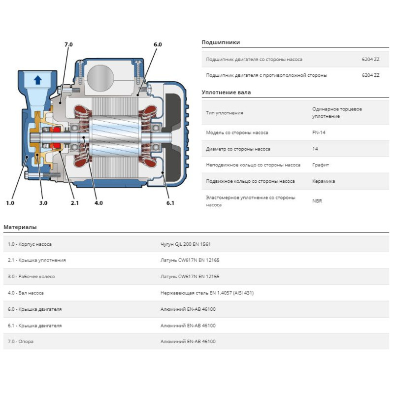 | Рабочее колесо (материал) | Латунь |
