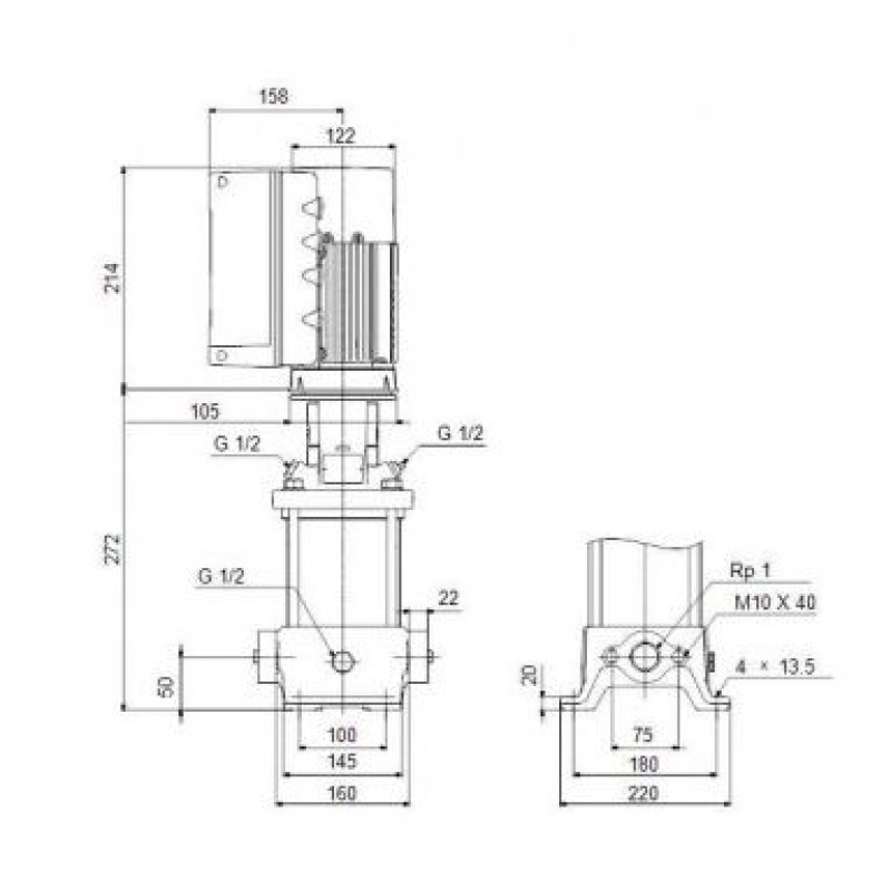 Вертикальный многоступенчатый центробежный насос Grundfos CRE 1-4 A-A-A-E-HQQE с всасывающим и напорным патрубками, расположенными на одном уровне ("ин-лайн"), что обеспечивает возможность установки в горизонтальной однотрубной системе. Головная часть и основание насоса из чугуна - все остальные контактирующие с перекачиваемой жидкостью детали из нержавеющей стали. Картриджное уплотнение вала обеспечивает высокую надежность, безопасное использование и легкий доступ для обслуживания. Вращение передается через разъемную муфту. Подсоединение к трубопроводу с помощью овальных фланцев с внутренней резьбой Rp.